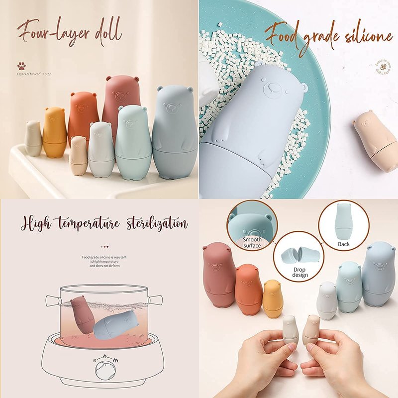 OESSUF 8 Pieces Silicone Nesting Dolls Russian Matryoshka Doll Easter Toys Montessori Educational Toy for Kid Boys Girls Bears Stacking Nesting Toys Set for Toddlers 3 Years Up