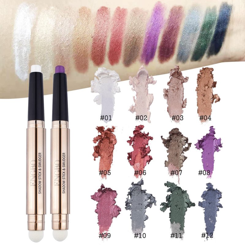 - 【12 Colors Eyeshadow Stick】12 kinds of different color high-pigmentation eyeshadow sticks to create high impact, can be used to create smoky, luminous and Metallic makeup. Shimmer and Matte Eyeshadow Sticks will create the right look for your different dressing styles and occasions.