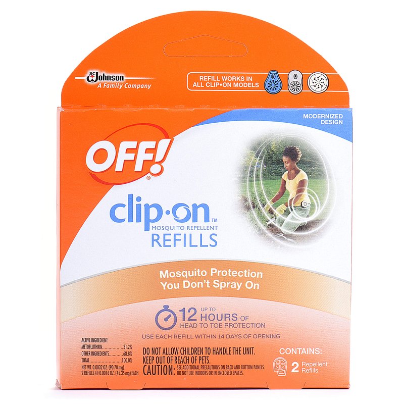 - Contains 2 Repellent Refills; Works with OFF! Clip-On Mosquito Repellent which uses quiet, battery-powered fan to circulate repellent all around you