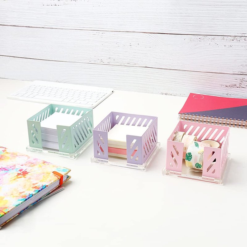 - Memo note cube holder is good des orgainzer and accessories, it can be used to hold self-stick notes, loose-leaf paper, business name card, binder clamp, washi tape, paper clips etc, keeping your desk in neat and organized.