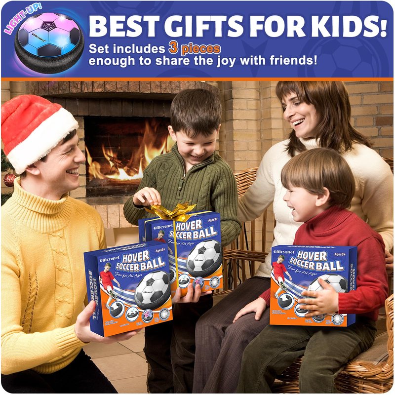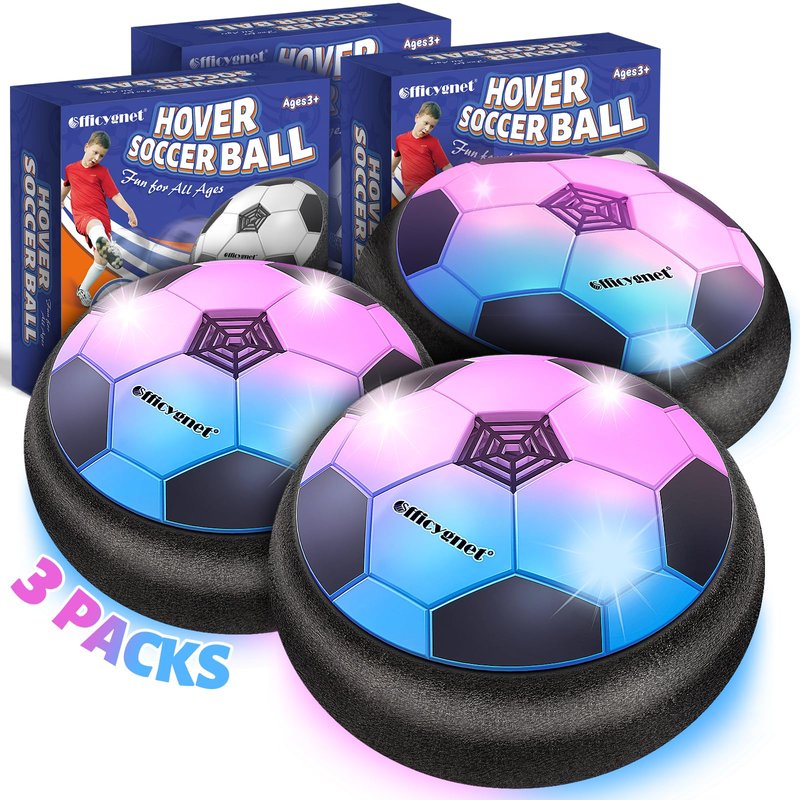 - Double the Fun with 3 Pack LED Hover Soccer Balls: Light up playtime with not one, but three LED hover soccer ball sets that create a mesmerizing glow, perfect for indoor and outdoor excitement. Watch as vibrant colors dazzle, making every game an exhilarating adventure, especially in low-light conditions, perfect as toys for 3 4 5 6 7 8 9 10 11 12 year old boys.