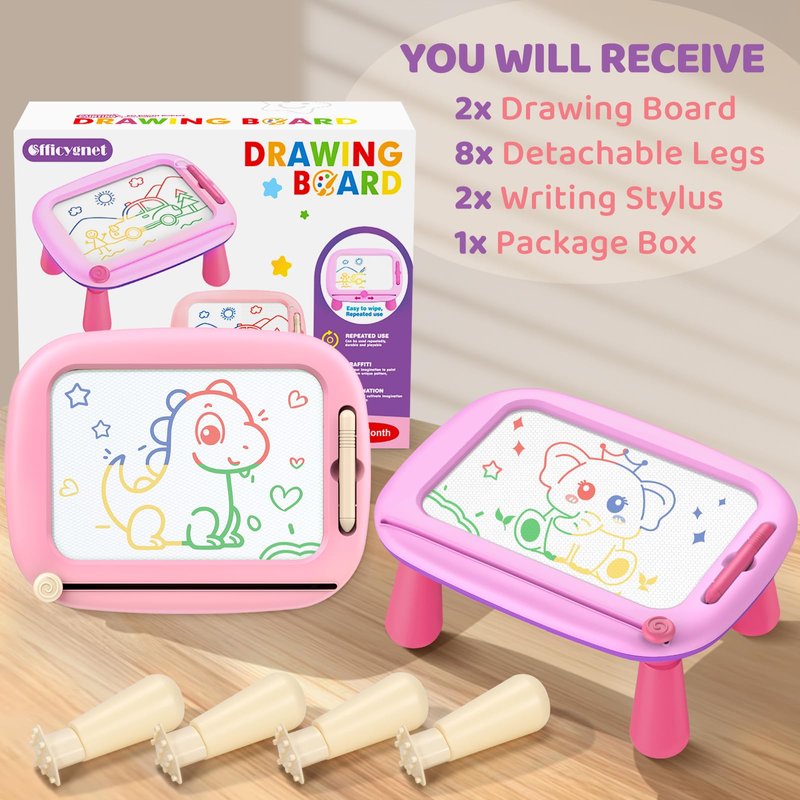 - Fun & Educational Doodle Board Set: Our toddler learning toys set contains 2 Pack reusable drawing pad with 8 detachable legs. Featuring a spacious 9 in-drawing area with four vibrant color zones, our doodle board for toddler girl toys 2-3 encourages imaginative play and color recognition. The toddler toys provide an excellent platform for girls age 1-3 to practice drawing, and writing, fostering their creativity and cognitive development. Ideal 1 2 3 year old girl birthday gift.