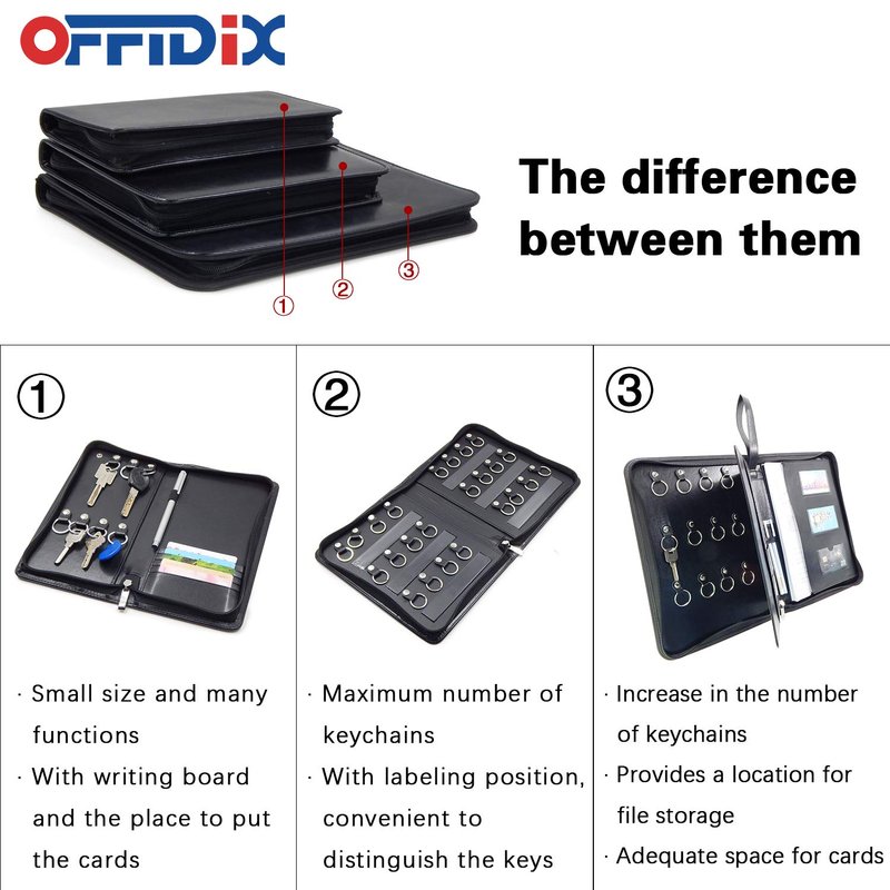 OFFIDIX Portable Zippered Key Case,Leather Portable Key Cabinet 24 Key Hooks Key Organizer,Manager & Landlord Key Holder, Business Padfolio for Real Estate Sales,Hotel Executives, Car Service