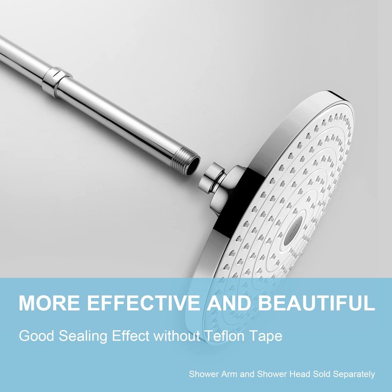 - [Beautiful and Effective] It adopts special process technology with widened sealing surface of water outlet to ensure close contact with the sealing gasket of sprinkler. 95% of shower head can achieve good water sealing effect without teflon tape, so there’s no need to worry about the beauty of bathroom will be affected by the residue of teflon tapes.