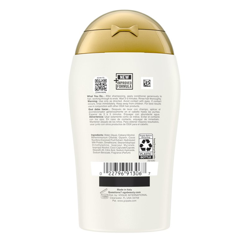 OGX Nourishing + Coconut Milk Moisturizing Conditioner, Hydrating & Restoring Conditioner Moisturizes for Soft Hair After the First Use, Travel Size, TSA-Compliant, 3 fl. oz