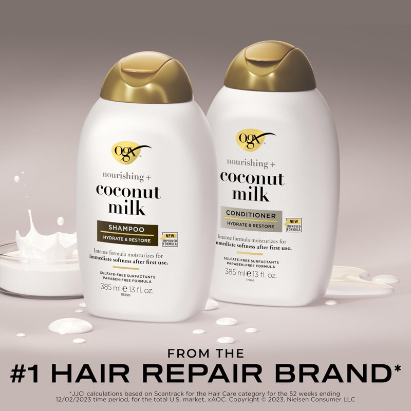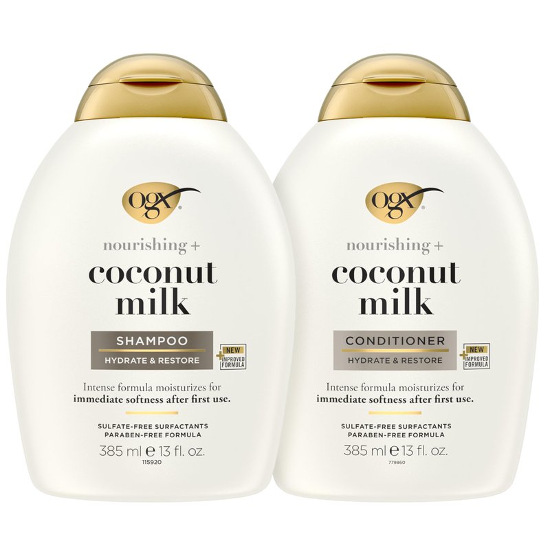 OGX Nourishing + Coconut Milk Shampoo & Conditioner Set, 13 Fl Oz (Pack of 2) (packaging may vary), White