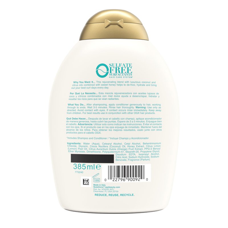 OGX Quenching + Coconut Curls Curl-Defining Conditioner, Nourishing Curly Hair Conditioner with Coconut /Citrus Oil & Honey, Paraben-Free with Sulfate-Free Surfactants, 13oz