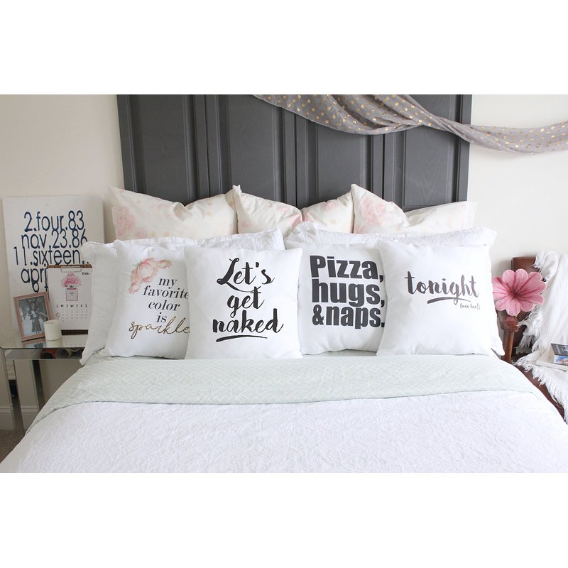 Add charm to your living room through this "Pizza, hugs, & naps. OH MY!" in black font. One listing of 18x18" throw pillow cover with "Pizza, hugs, & naps. OH MY!" in black. Put on your sofa, courch, bed or chair so people know what is allowed. Percet Gift - You will bring smiles and maybe more! Great Present for: him or her, anniversary, wedding, engagement, Christmas, Valentine’s Day, boyfriend, girlfriend, long distance relationship, cotton anniversary, romantic gift, wife, husband, I'm sorry gift, because: love, just because, bride and groom. no screenprinted material. no harmful chemicals washable fade proof Hand Decorated In USA - Oh, Susannah's pillowcases are designed and manufactured in North Carolina to the highest quality standards. We start with high quality double brushed microfiber pillowcases that are comparable to 1200 threadcountegyptian cotton. Each pillowcase is decorated using a process that permanently dyes the fabric in a way that you can't even feel the words-it is just as soft as the rest of the pillowcase. Since the best quality microfiber comes from China, we've also sourced our cut and sew operations from a respectable factory there with very good standards including no child labor. We and our customers love to sleep on these high definition image pillowcases every night.