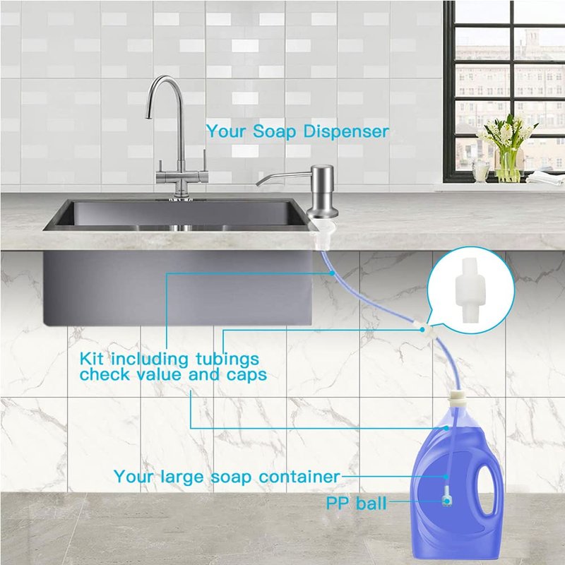 - 【NO MORE MESSY REFILLS】:No more crawling under the sink. Our elegant sink soap dispenser comes with a tube that goes directly into a large dish soap bottle, you can skip the frequent refill process.