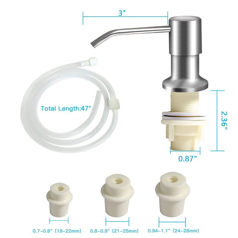 - 【Sink Soap Dispenser】: Our kitchen sink soap dispenser is made with stainless steel and ABS plastic, it is acid-resistant and corrosion-resistant, with 3''inch nozzle, the pump can rotate 360 degrees all directions, suit your different need, built-in spring, the press head is smooth rebound, this under sink soap dispenser is very flexible.