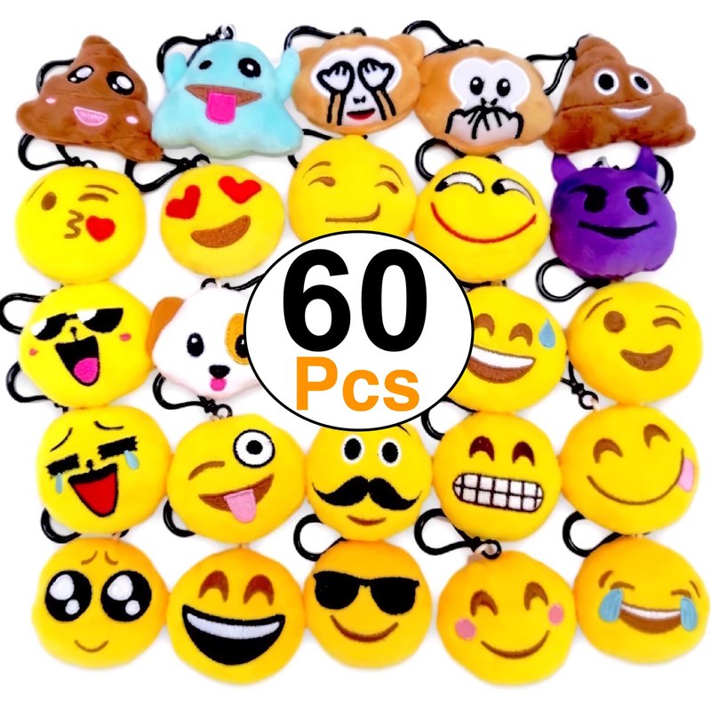 OHill 60 Pack Mini Plush Emoticon Keychain Mini Pillows Key Ring for Birthday Event Party Favors Supplies