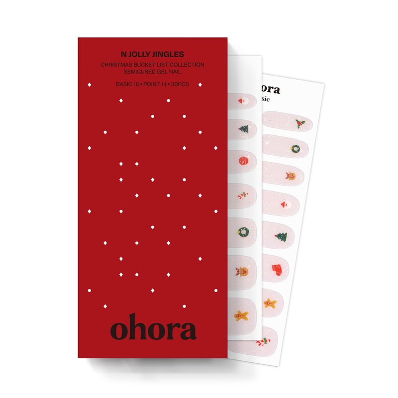 ohora Semi Cured Gel Nail Strips (N Jolly Jingles) - Works with Any Nail Lamps, Salon-Quality, Long Lasting, Easy to Apply & Remove - Includes 2 Prep Pads, Nail File & Wooden Stick