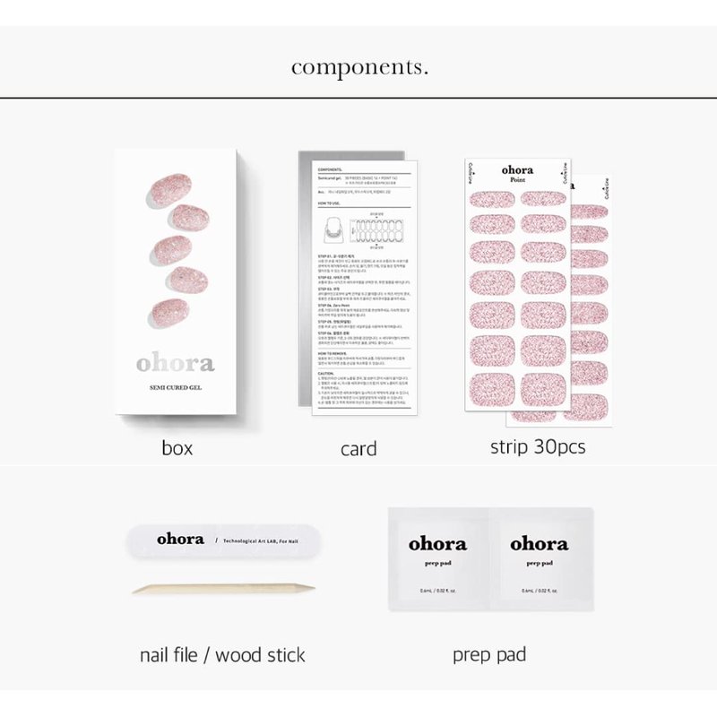 ohora Semi Cured Gel Nail Strips (N Pixie Dust) - Works with Any Nail Lamps, Salon-Quality, Long Lasting, Easy to Apply & Remove - Includes 2 Prep Pads, Nail File & Wooden Stick