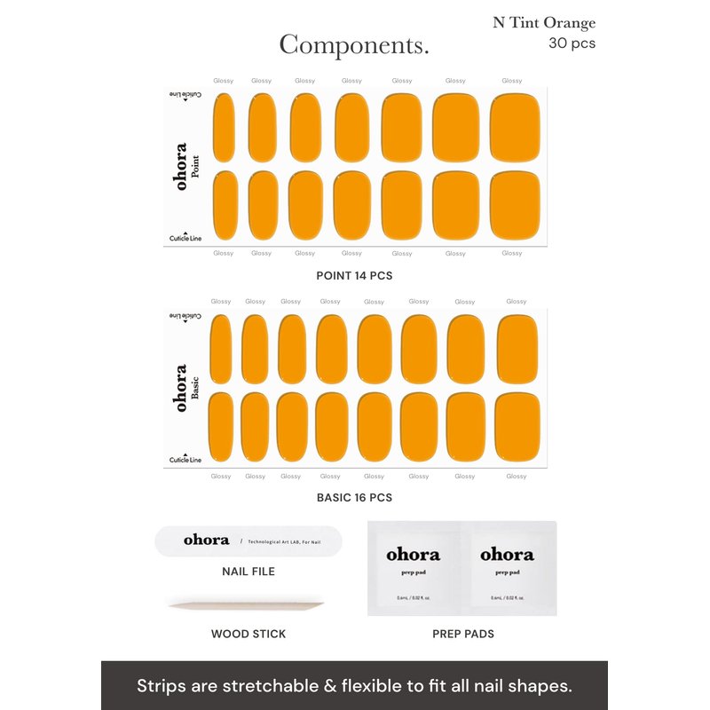ohora Semi Cured Gel Nail Strips (N Tint Orange) - Brown, Tint, Works with Any UV/LED Nail Lamps, Salon-Quality, Long Lasting, Easy to Apply & Remove - Includes 2 Prep Pads, Nail File & Wooden Stick