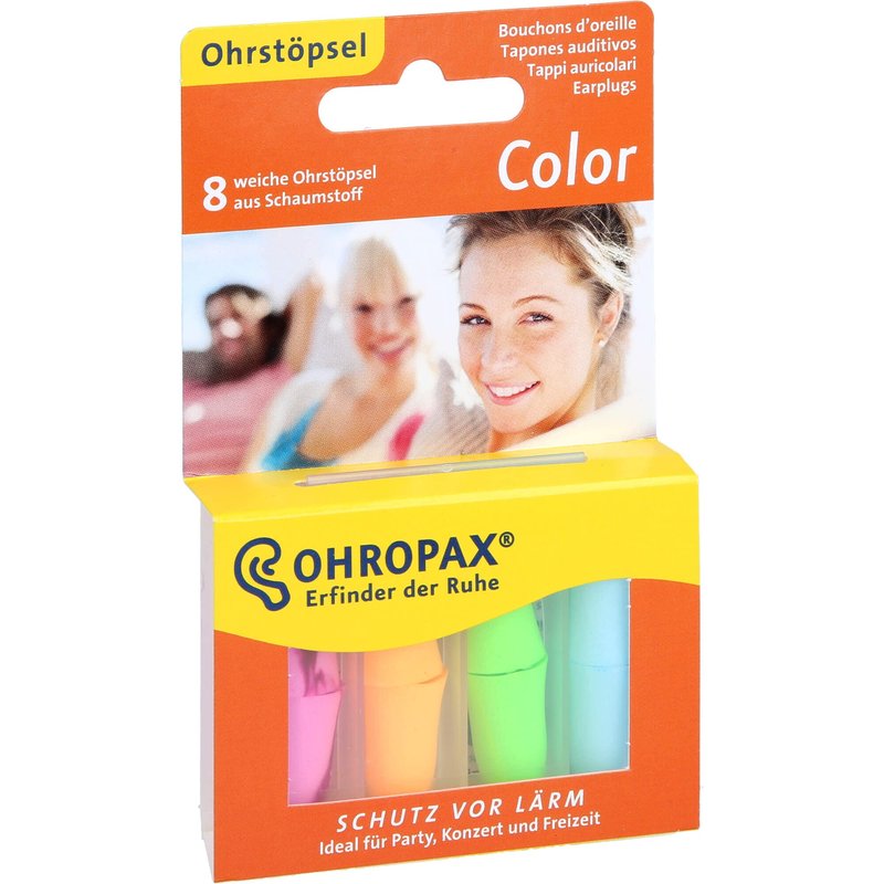 OHROPAX Color puts a cool damper on noise! Ear plugs made of soft, skin-friendly foam, in many different colors – every ear plug looks different. Ideal for parties, clubbing, leisure activities, sport and anywhere there is irritating noise.