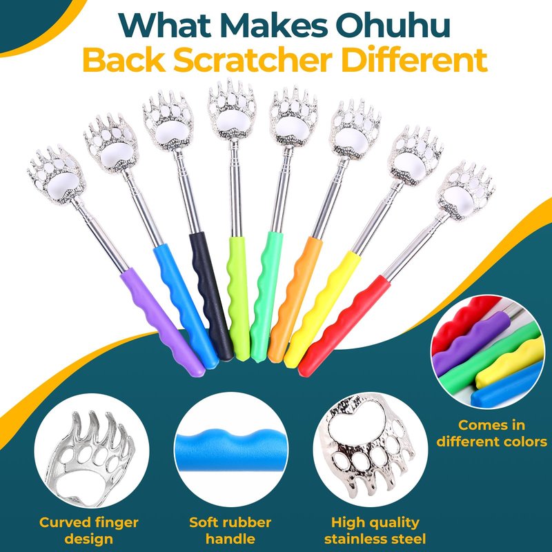 - Amusing Gifts: Ohuhu's telescoping back scratcher brings both practicality and fun to any occasion. Perfect as Secret Santa gifts or Mother's Father's Day gifts, this handy gadget delivers laughter to those who have everything. It's a unique gift choice for men, women, fathers, dads, grandpa, grandma, boyfriends, kids, teens, or anyone who loves a good gag!