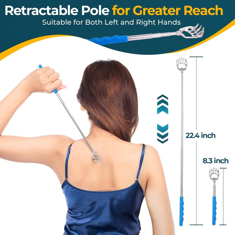 - Telescoping Back Scratcher: Ohuhu scratchers extend from 8.3 inches to 22.4 inches. They meet the required length of the human back. effortlessly reaching your back, foot, head, and other spots you can't reach. You no longer have to search for a friend or your wife to get that itch off your back.