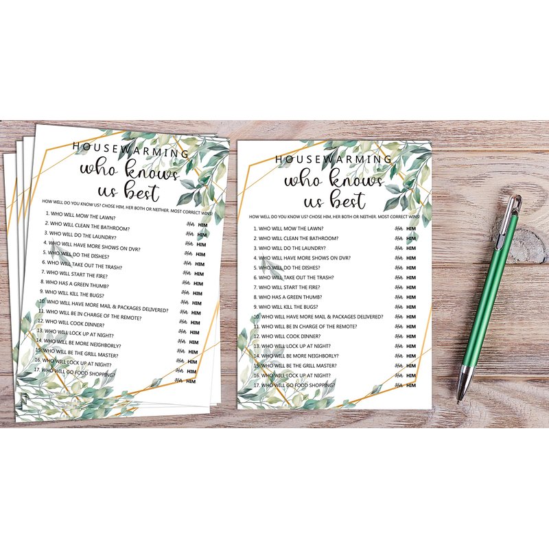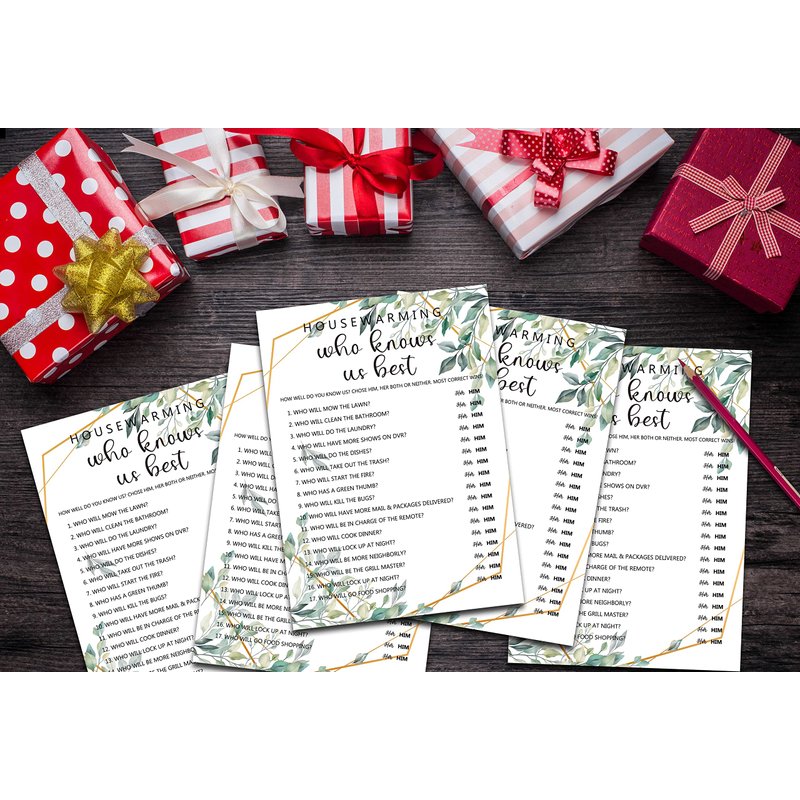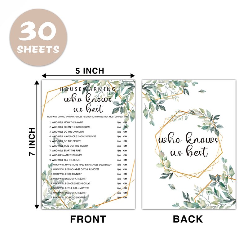 OICPYD Housewarming Party Games, Who Knows Us Best, Greenery New Home, New House, New Homeowner Party Games Cards, 30 Sheets Each Pack