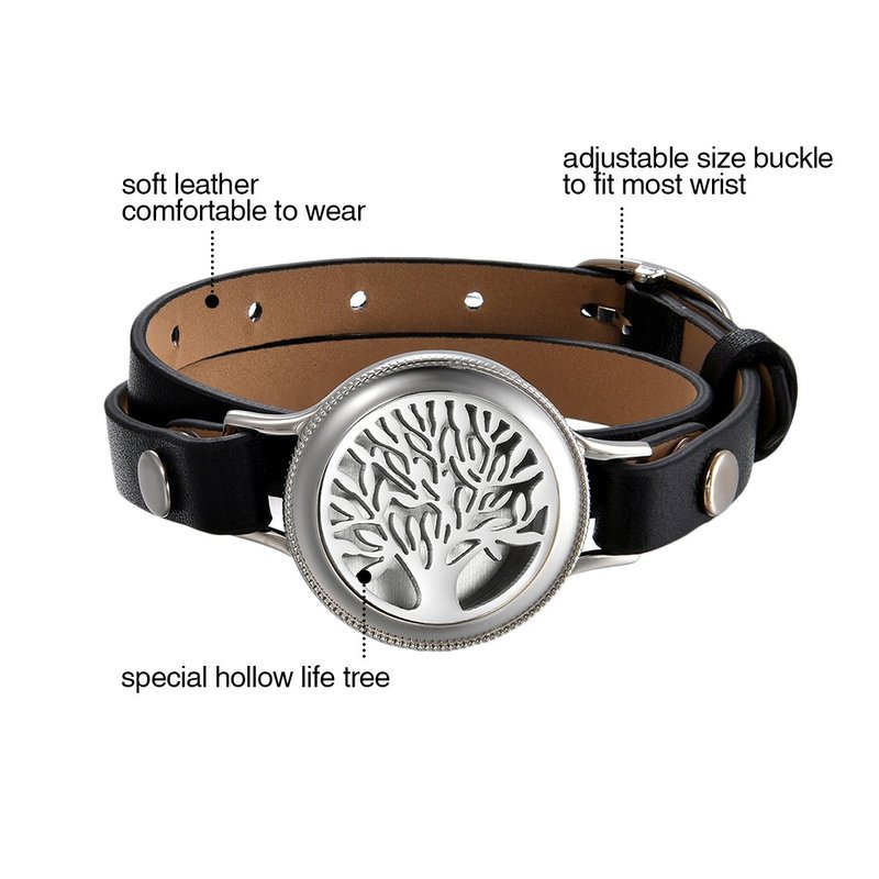 - Skin-Friendly Material -- Essential oil diffuser locket made of Surgical stainless steel, corrosion resistance, do not worry will rust. Aromatherapy Locket Bracelet band is Leather and does not cause skin irritation.