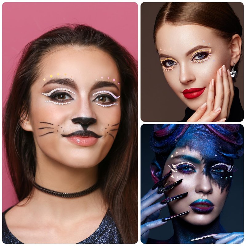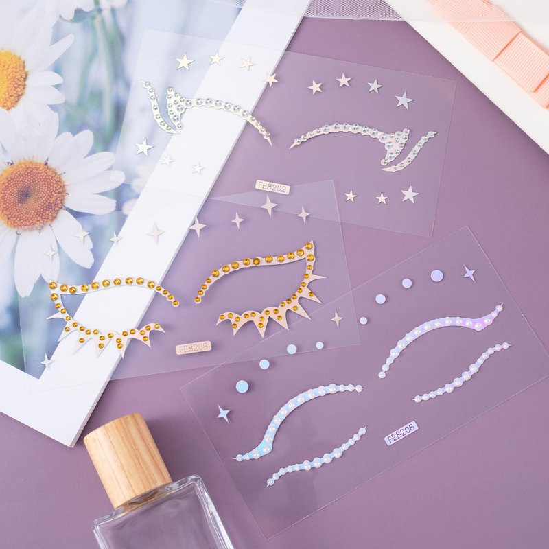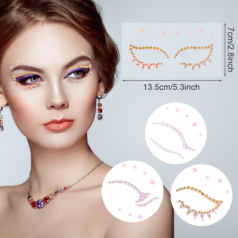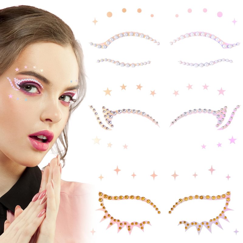 - Occassions - The eye gems strips are stylish makeup temporary tattoo stickes for women and girls for festival face makeup, halloween pearl eye stickers, christmas eye face star stickers, theme parties, face rhinestones stickers, for prom, dancing, valentine's day, rave, school parties, cosplay, events, birthday parties, easter day, music festivals, carnivals, take pictures.