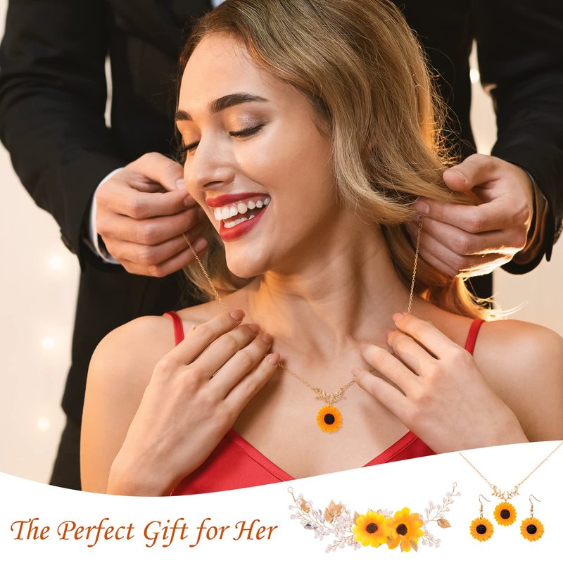 - Package Include - There are 1pcs sunflower bridal headband, 1pcs sunflower necklace, 1 pairs sunflower earrings in the package. Pretty bridal decorative accessories kit for wedding party and taking pictures.