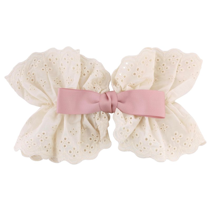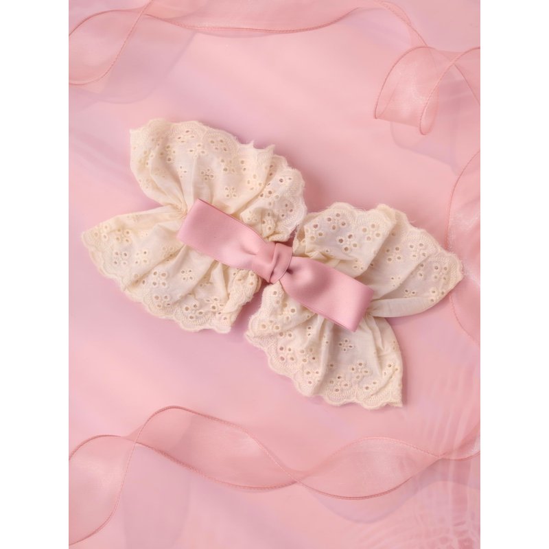 - French barrette clip 3.5", cotton lace fabrication with ribbon long bow detail on top