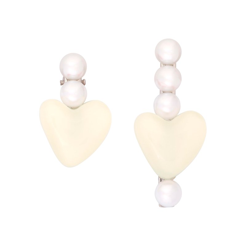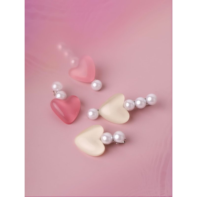 - Classic alligator clip, irregular mismatched style, resin heart pendant with pearl details