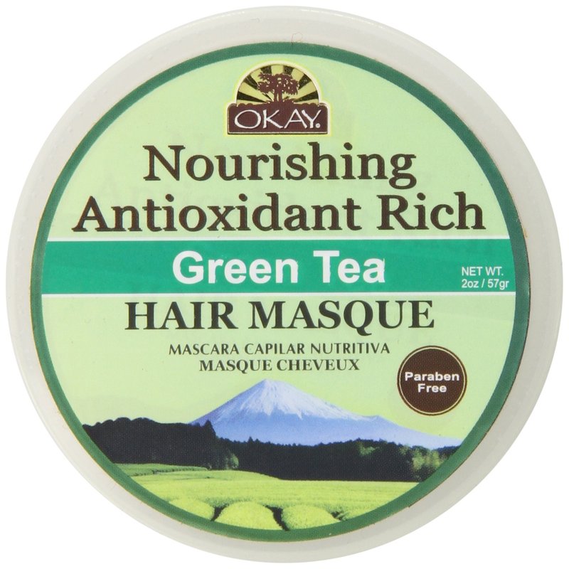OKAY | Green Tea Nourishing Antioxidant Rich Hair Masque | For All Hair Types & Textures | Revitalize - Rejuvenate - Restore | With Tea Tree Oil | Free of Paraben, Silicone, Sulfate | 2 oz