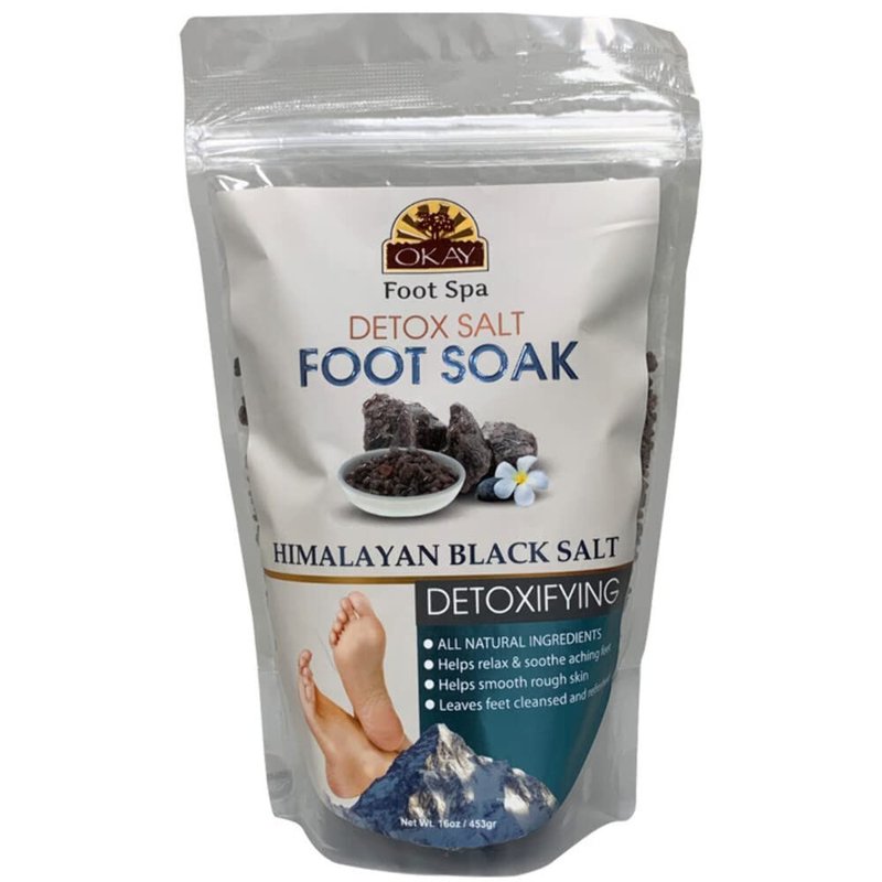 OKAY | Himalayan Black Salt Detoxifying Foot Soak | For All Skin Types | Cleanse - Refresh - Relax | Free of Paraben, Silicone, Sulfate | 16 oz