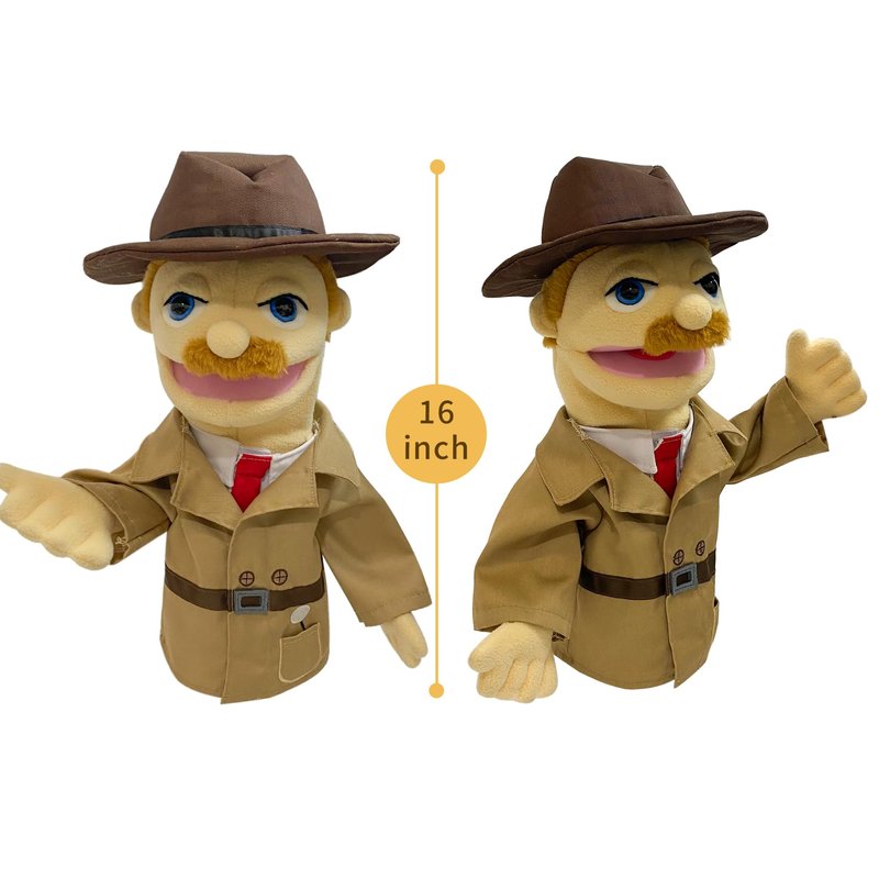 okegztoa 16" Puppets Entriloquist Puppet,Hand Puppets for Kids Plush Detective Puppets for Adults with Removable Mouth Puppet for Kids Ages 4-8,Hand Puppet for Adults with Scalable Puppet Control Rod