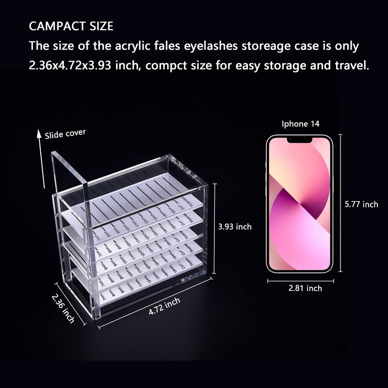 - CAMPACT SIZE: The size of the lash organizer is only 2.36x4.72x2.93 inch, compct size for easy storage and travel.