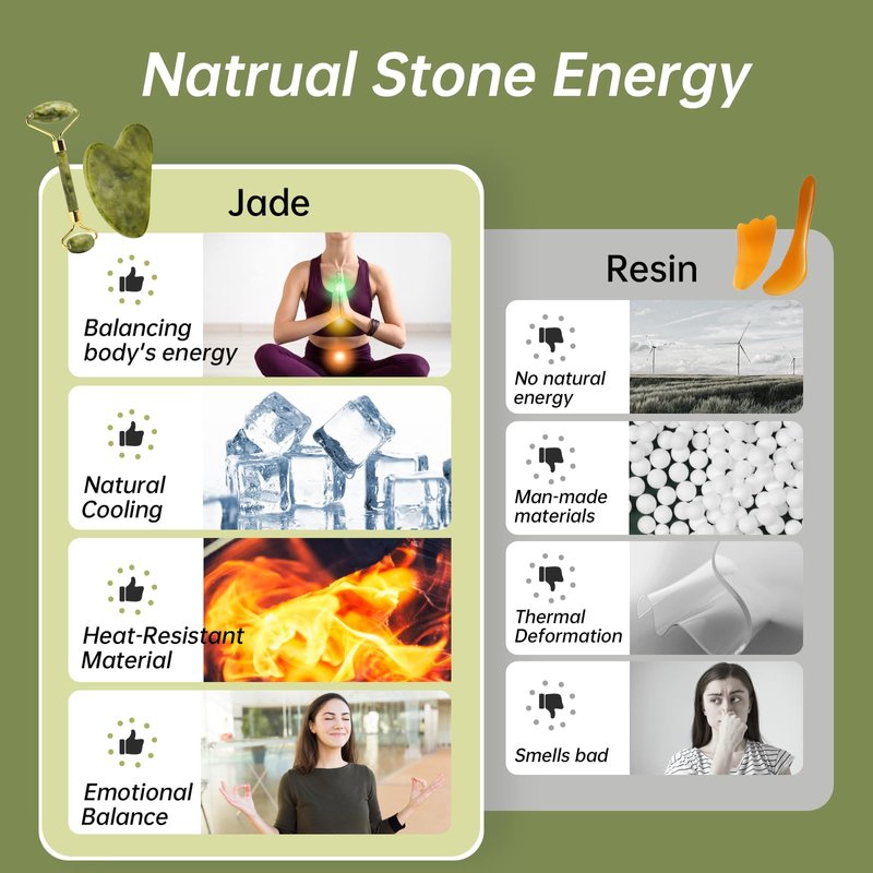 - 【Balancing Energy, Inside Out】Experience balanced minds and bodies with our real jade Gua Sha Scraping Massage Tool Set. Its magnetic energy calms minds, while the natural cooling effect after freezing can revitalize the skin again. Jade Gua Sha made of natural material is an ideal alternative to plastic guasha and ice rollers in skincare.