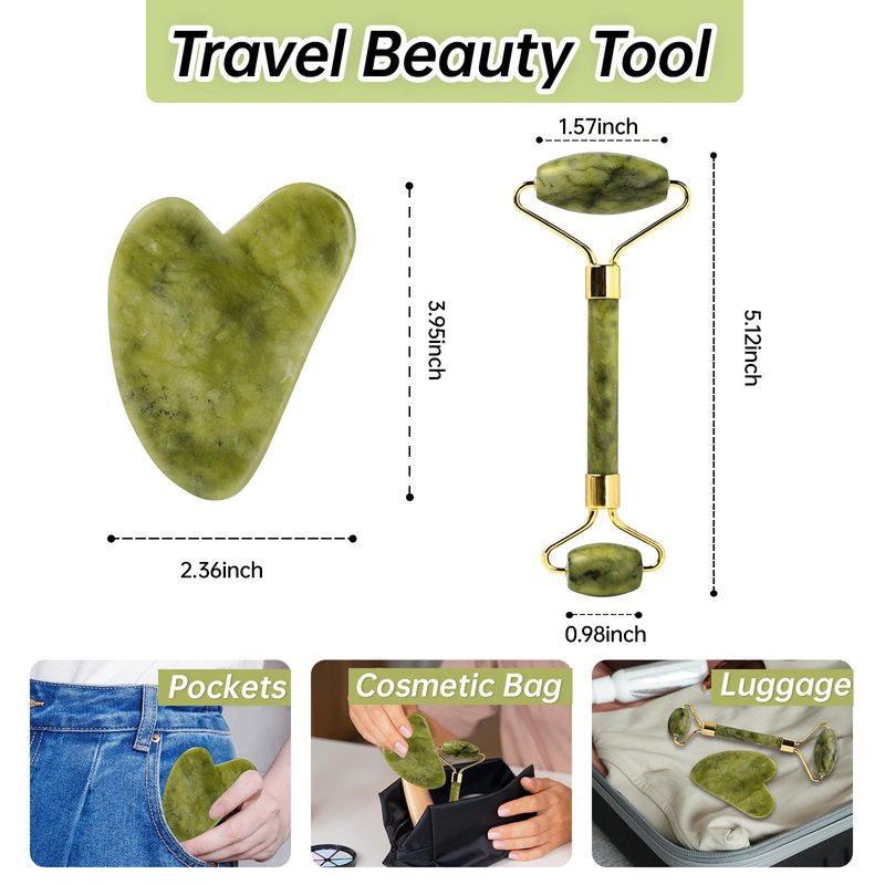 - 【Travel Beauty Tool】Our travel-sized Jade Gua Sha and roller set fits easily in your pocket or bag, allowing for on-the-go beauty routines at home or anywhere. Realize beauty anytime, anywhere. Elevate your skincare routine effortlessly.
