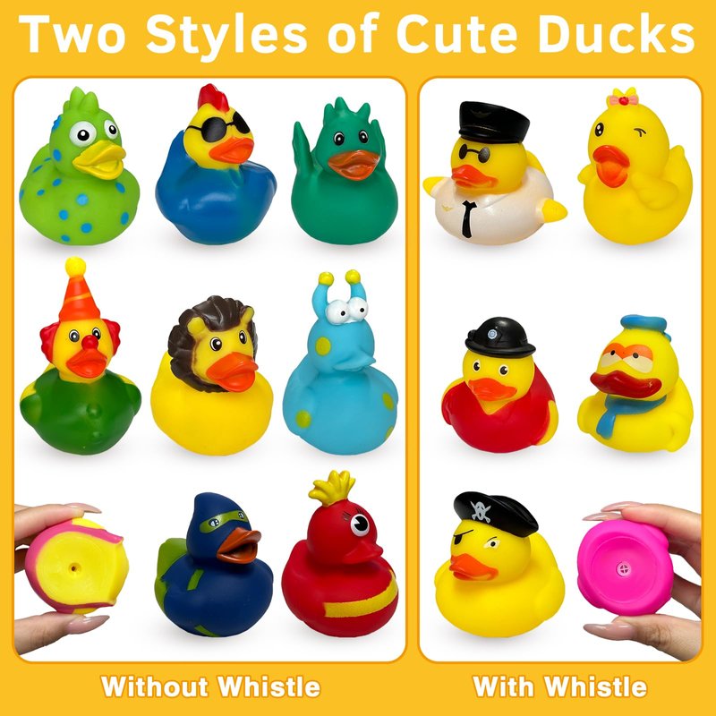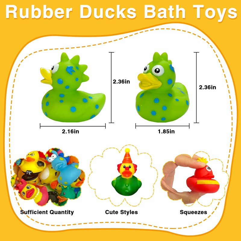 - FUN BATH TOYS: Rubber ducks are the perfect addition to your kids bath! It has vibrant colors and diverse characters, the kids will be obessed with them. Whether in the pool, bathtub, these ducks promise endless aquatic amusement. Additionally, they double as carnival duckies for exciting games and serve as lively decorations to animate any kiddie party!
