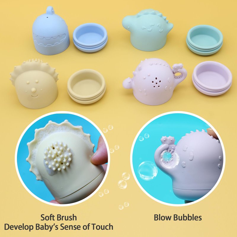 - 【Squeeze & Blow bubbles】Moderate size, suitable for children to grasp. A variety of ways to play, your little ones can squeeze water, blow bubbles. With a soft brush, it can stimulate the development of baby's sense of touch.