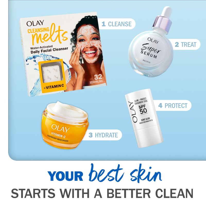 Olay Cleansing Melts + Vitamin C Face Cleanser, 64 ct. total (2 x 32 ct.), Water-Activated Face Wash to Clean, Tone, and Refresh