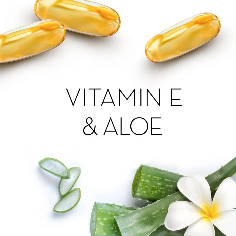 - Formulated with Vitamin E, B3, and aloe