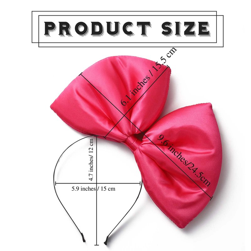 - Pink headbands with bow are approx 10.8*9.6 inches/27.5*24.5 cm(Bow : 9.6*6.1 inches/24.5*15.5 cm ; Hair Hoop : 5.9*4.7 inches/15*12 cm).Costume bow is glued to one side of the bow hairbands rather than centered, and the big bowknot is not removable.