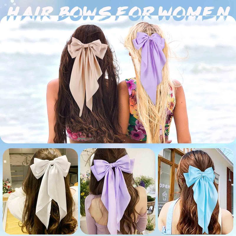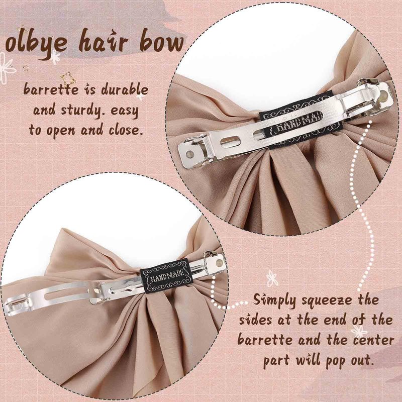 - Bows for women are made of high quality silky satin, soft and comfortable to the touch, the huge shape and bright color are absolutely eye-catching, you will gain a lot of compliments when you wear hair bow clip. The barrette is sturdy, easy to open and close, just squeeze both sides at the end and the center part will pop out.