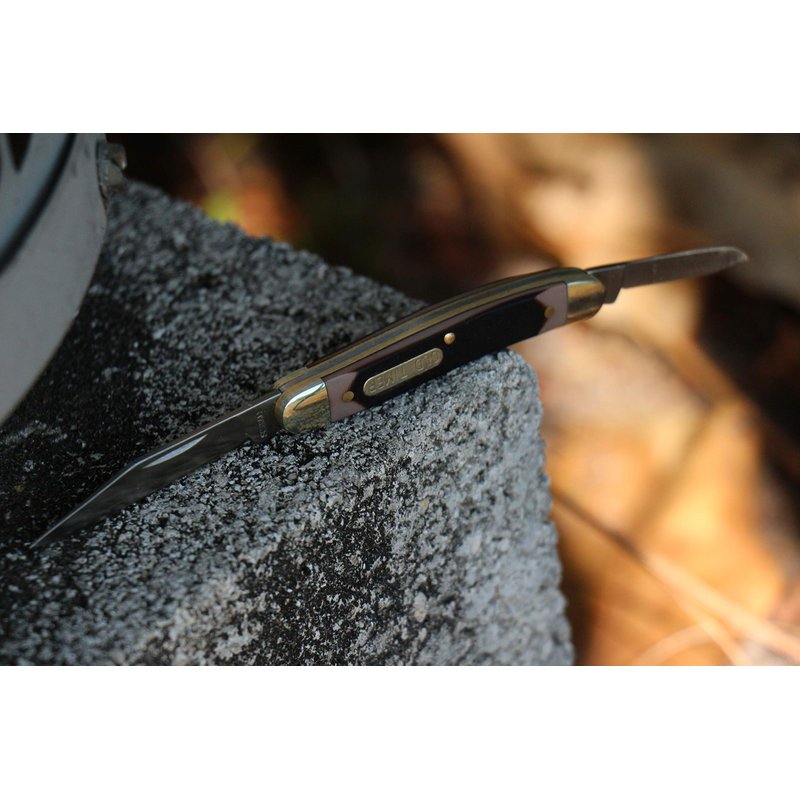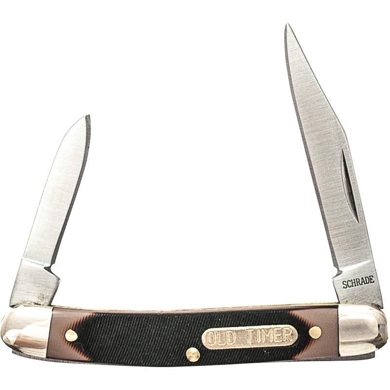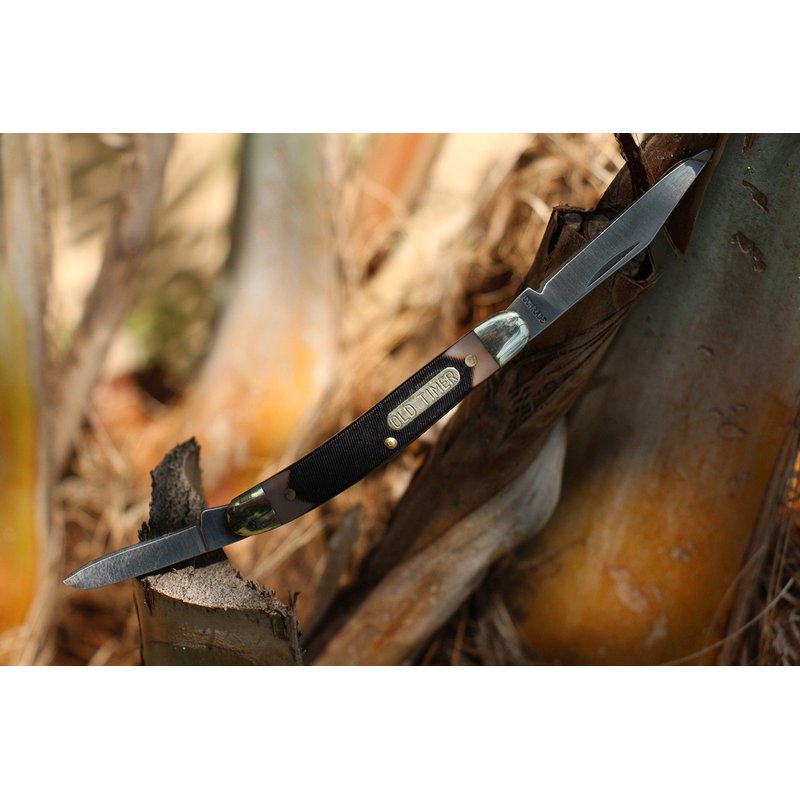 Old Timer 104OT Small Canoe 4.7in Stainless Steel Traditional Folding Pocket Knife with Clip Point and Drop Point Blades, Sawcut Handle, and Convenient Size for EDC, Camping, Hunting, and Outdoors