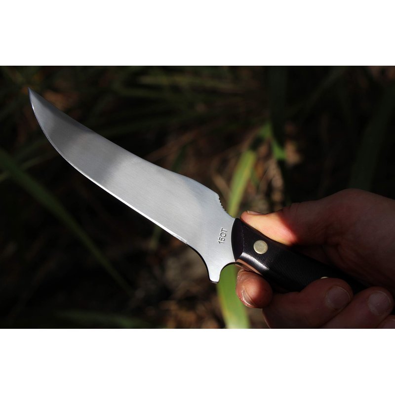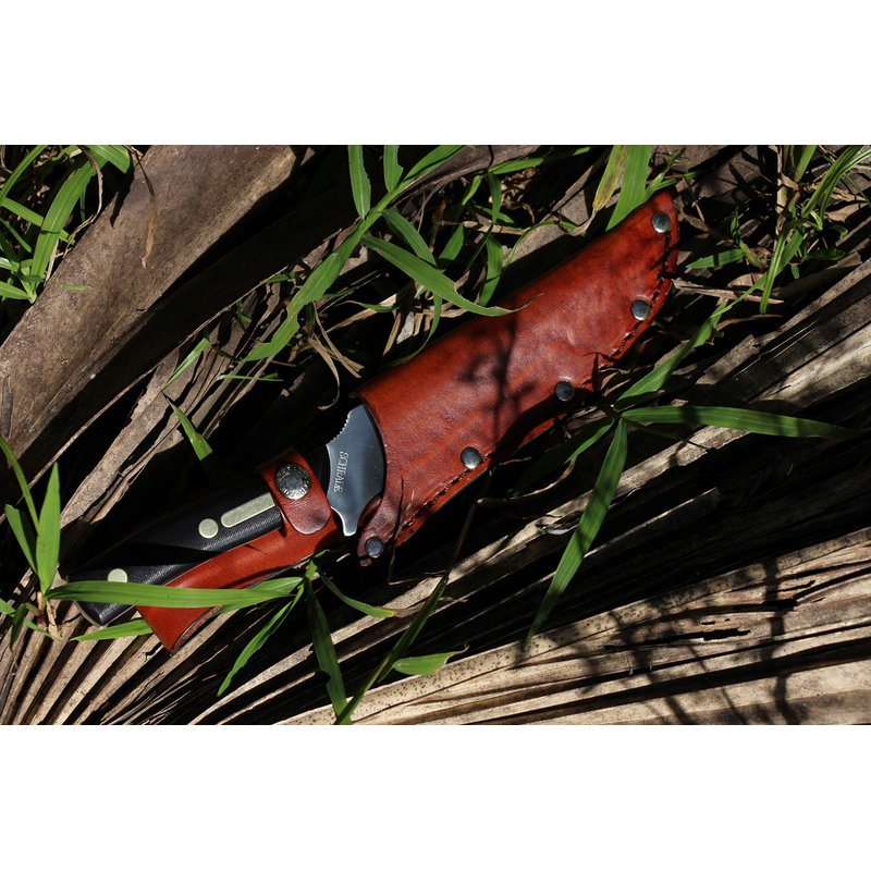 - SECURE: Knife features a full tang design complimented by an ergonomic handle made of sawcut delrin slabs