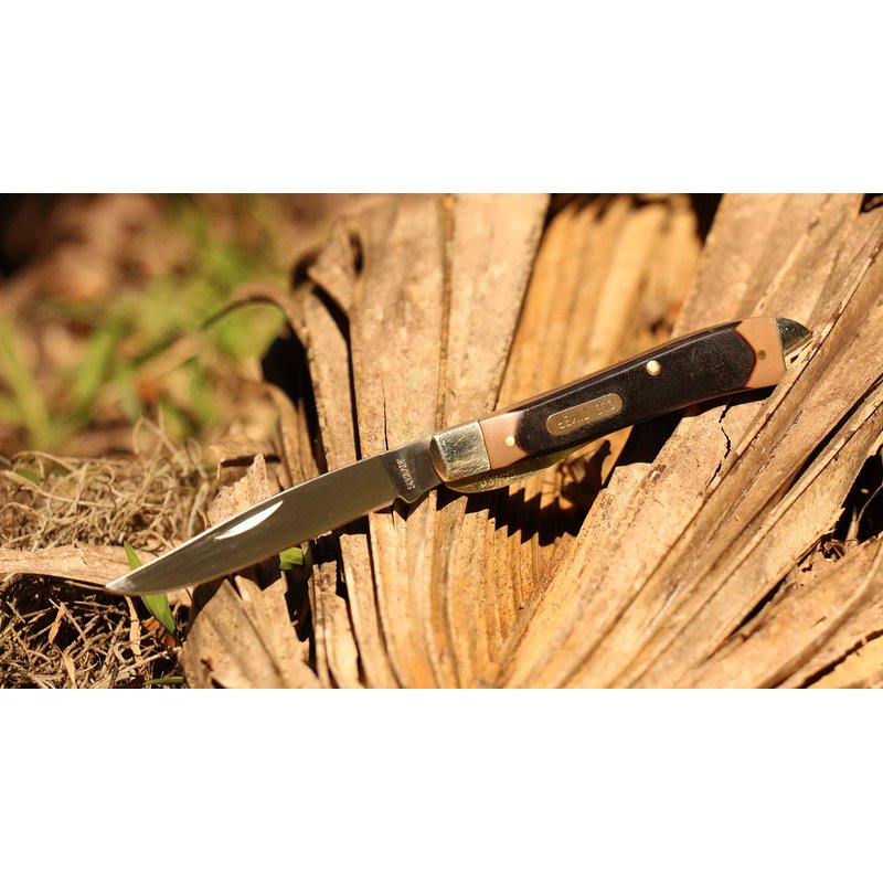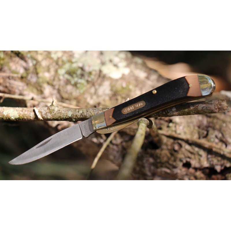 Old Timer 194OT Gunstock Trapper Lockblade Traditional Folding Pocket Knife with 3.1in Clip Point Blade, Nickel Silver Bolsters, and Sawcut Handle for Hunting, Camping, Whittling, EDC, and Outdoors ,Black