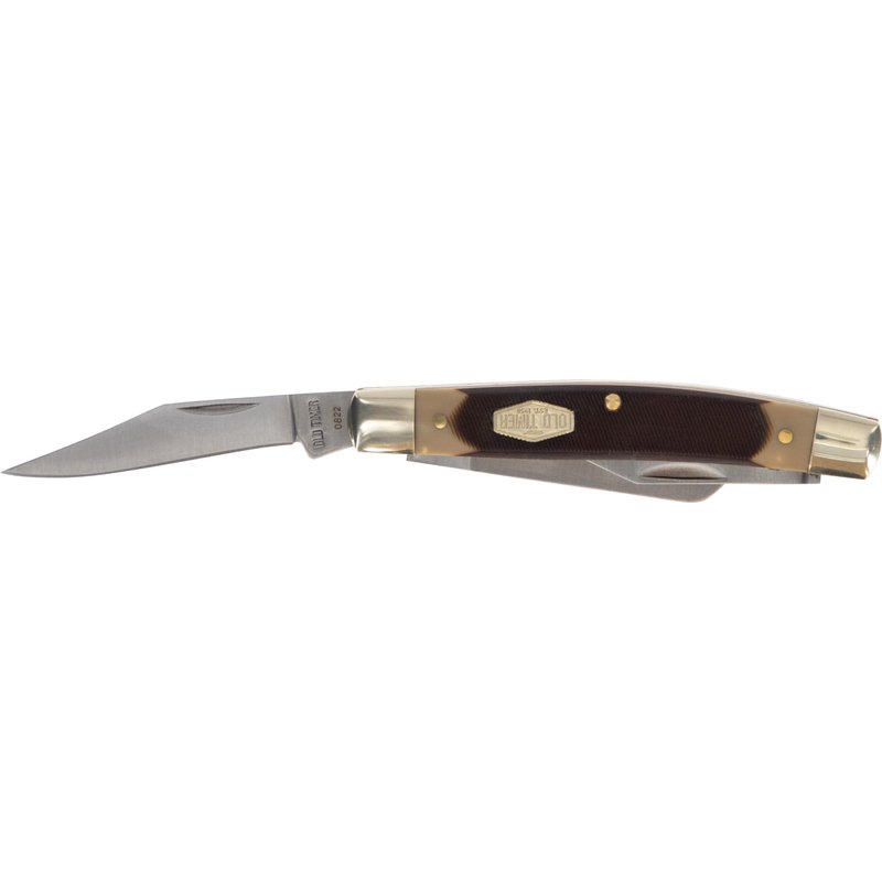 Old Timer 44OT Workmate Traditional Folding Pocket Knife with 4 High Carbon Stainless Steel Blades, Sawcut Handle, and Convenient Size for EDC, Whittling, Camping, Hunting, General Use, and Outdoors , Brown