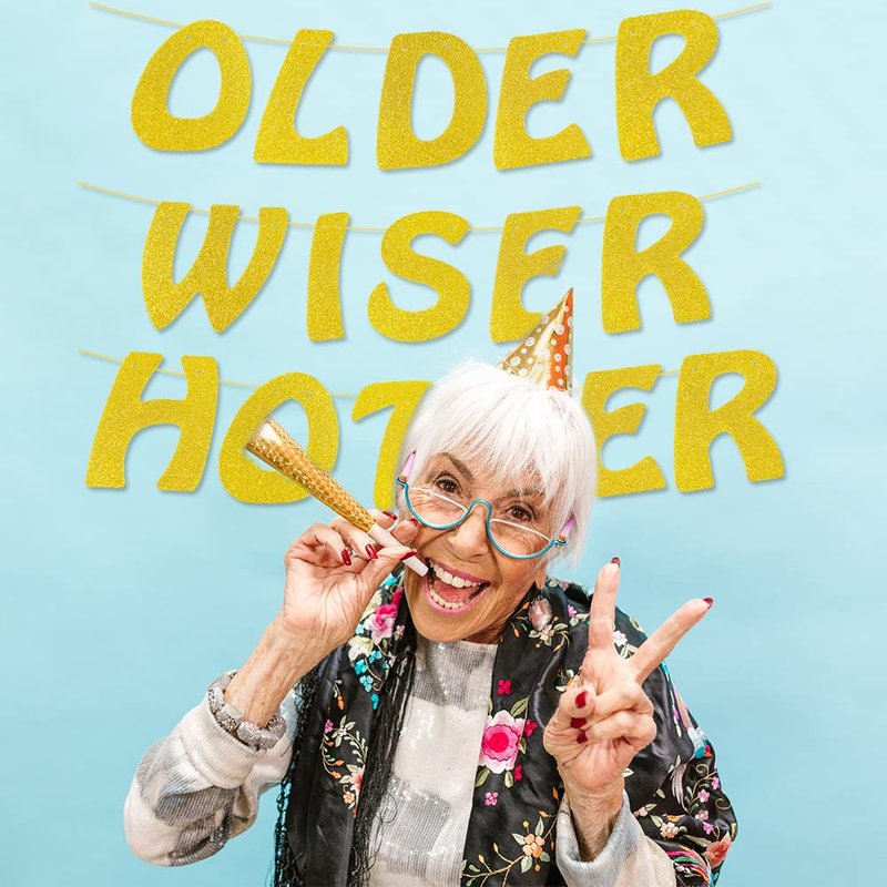 Older Wiser Hotter Banner is perfect for your 30th party or any age birthday party, like 40th 50th 60th 70th 80th 90th 100th birthday party.