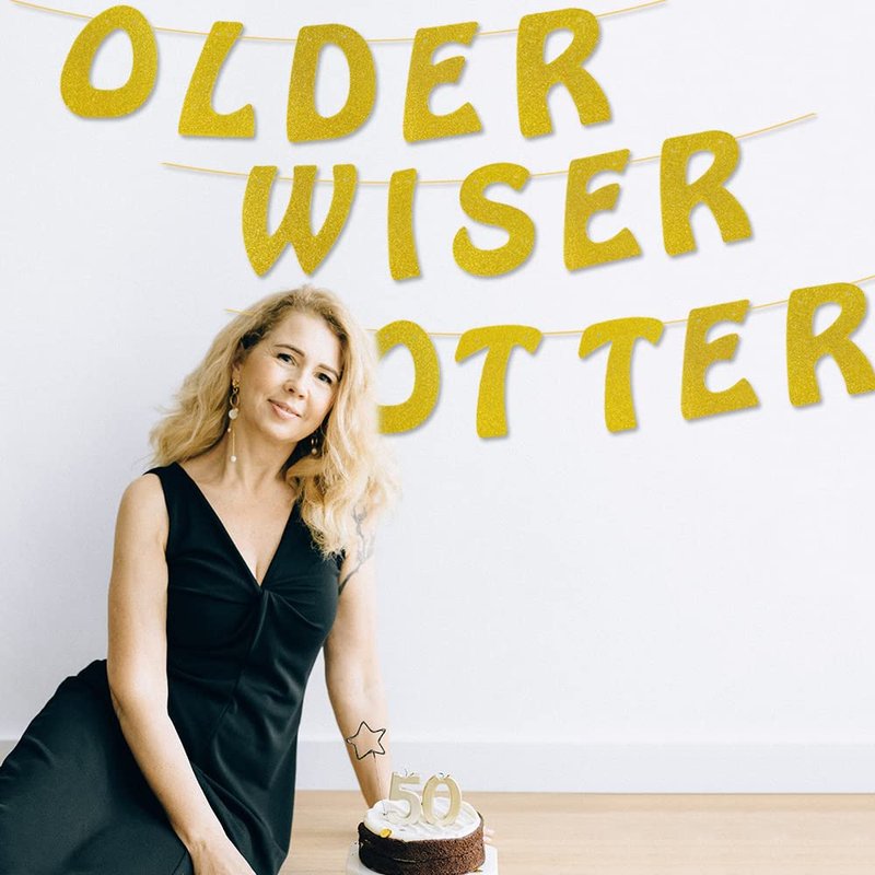 Older Wiser Hotter Banner Gold Glitter Fun Birthday Party Decorations Happy Birthday Party Supplies for disco 30th 40th 50h 60th 70th 80th Birthday Party Decorations
