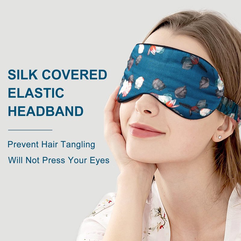 OLESILK 100% Natural Mulberry Silk Sleep Eye Mask Block Out Light, Fashion Printed Eye Mask Blindfold for Women Men Full Night Sleeping, Chic Eye Cover Eyeshade, Pattern 1