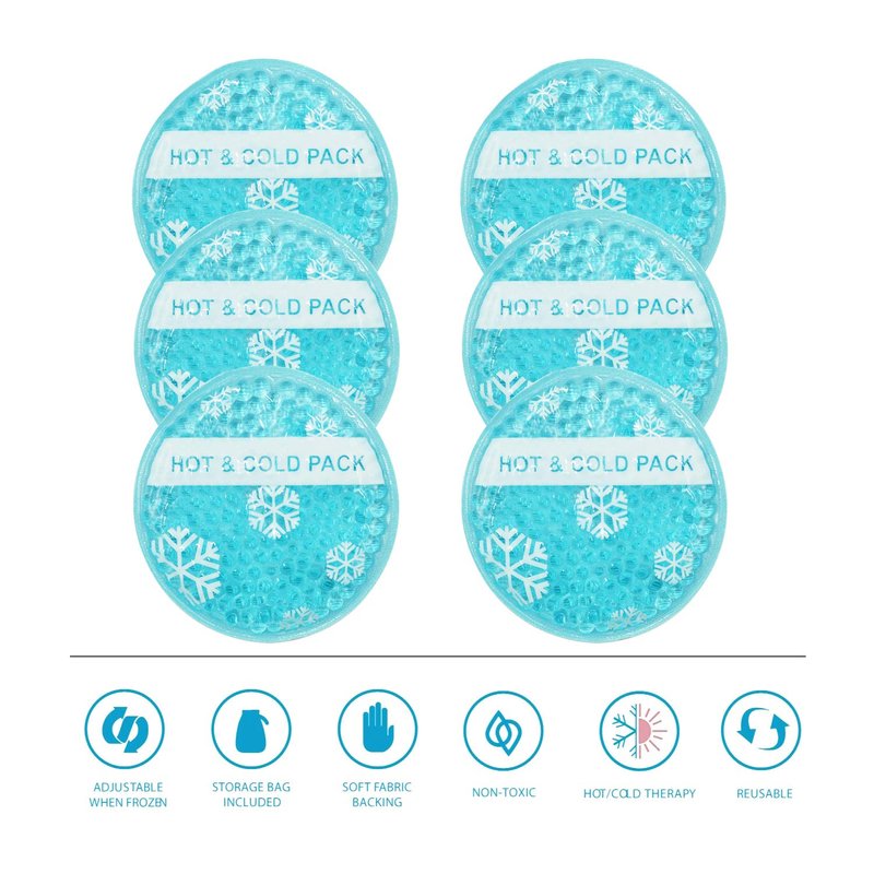 - SAFETY COMES FIRST - Each round gel ice pack in this bundle is made up of non-toxic gel contained in a leak-proof upgrade plastic with a cloth backing that won't rip, tear, or puncture. Recommended by doctors, sports professionals, and therapists alike, you can rotate between 6 of these gel packs for fast and efficient treatment.