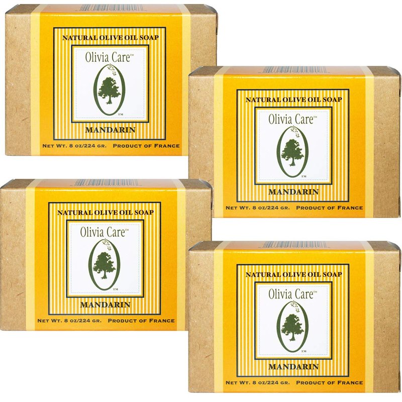 Olivia Care Premium Mandarin Bath & Body Bar Soap Organic, Vegan & Natural Olive Oil Repairs, Hydrates, Moisturizes & Deep Cleans Vitamin C Good for Sensitive Dry Skin Made in USA 8 OZ – (4 PACK)