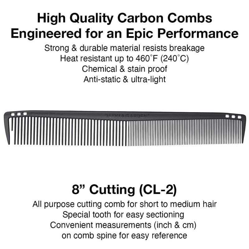Olivia Garden CarbonLite 8.5" Cutting Comb made of carbon, ultra-light, high heat resistant, durable and anti-static