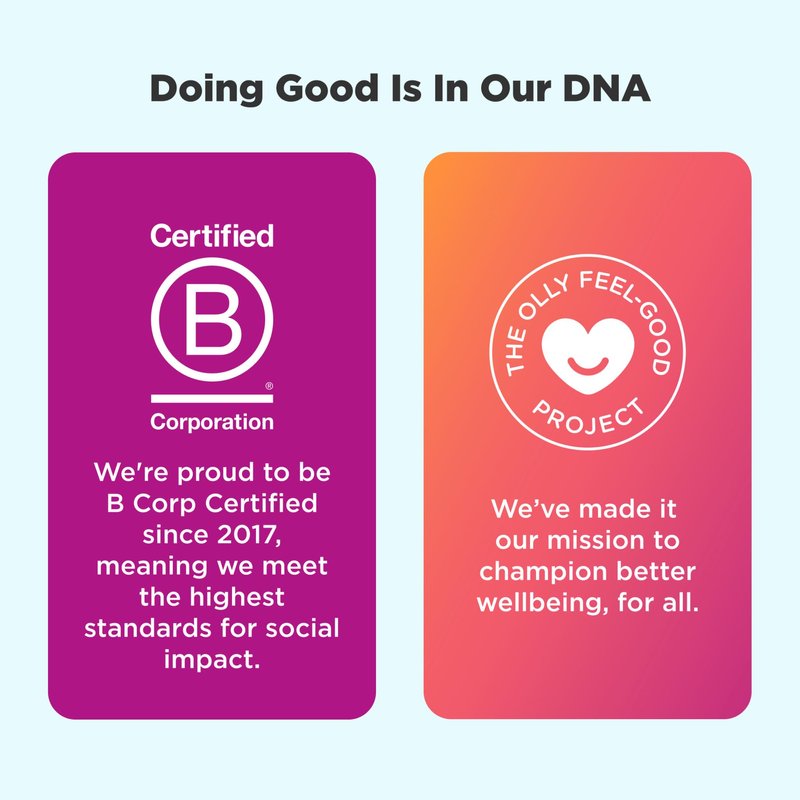 - MORE OLLY GOODNESS: We create products that are just as effective as they are delicious— gummies, daily multivitamins, premium softgels and more ways to feel happy inside out